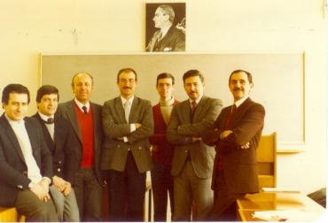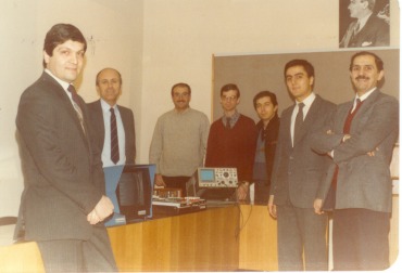HÜ Bilgisayar Bilimleri Mühendisliği Bölümü Mikroisleyici Laboratuvarı'nda, soldan Dr. Ali Saatçi, Dr. Ersay Gürsoy, Hürriyet Aydın Ok, Harun Artunel, Mustafa Aykut, Fahir Ergincan ile Bölüm'ün Kurucu Başkanı Dr. Aydın Köksal bir arada. - 1982
