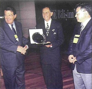 Türkiye Bilişim Derneği'nin bir salonunda, "Bilişim" dergimizin çerçevelenmiş kapaklarının asılı olduğu duvarın önünde, ayaktakiler soldan ikinci Enis Erkel, Aydın Köksal (TBD kurucu bşk), Ersin Töreci (TBD bşk), Ali Arifoğlu (TBD bşk); oturanlar: İlker Tabak (tam gözükmüyor), N. Kaya Kılan (TBD bşk), Hülya Küçükaras (HÜ-Bs.Müh.-1982), Necdet Kesmez ağabeyimizle bir arada.