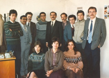 Bilişim Ltd'in TCZB projesi ardından, ikinci işi olan Türkiye Emlak Bankası Proje takımı ile Bankacı dostlarımız, Bilişim Ltd'de Cesur Baransel'in doğum gününe kutluyoruz, 5 Temmuz1987. Ayaktakiler, soldan Fatih Eker (EB), Hikmet Gürbüz (EB), Sekreterimiz Ayşe Tuncer, Ayşe Eser Erkmen (sonra Baransel), Cesur Baransel, ... , AK, Celile H. (Koç-Burroughs), Ali Nural (şimdi Avustralya'da), Cengiz Erbaş (HÜ-BBM'den stajyerimiz), oturanlar: Şerife Şıkdiker (EB), Kayhan İmre, Arife H. (EB Küçükesat Şubesi Md.).