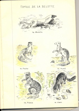 7. Sınıfta Biyoloji dersi öğretmenimiz Sinoir, çiklet vb. aldığınızda elimize geçen hayvan resimlerini bir defterde biriktirmemizi önermişti. Ben 14 yaşımda boş bir defter alıp bütün omurgalardan memelilerin ve kuşların, tarama ucu ve çini mürekkebiyle birer resmini yapıp yağlı pastel boyalarımla renklendirdim. istemişti.