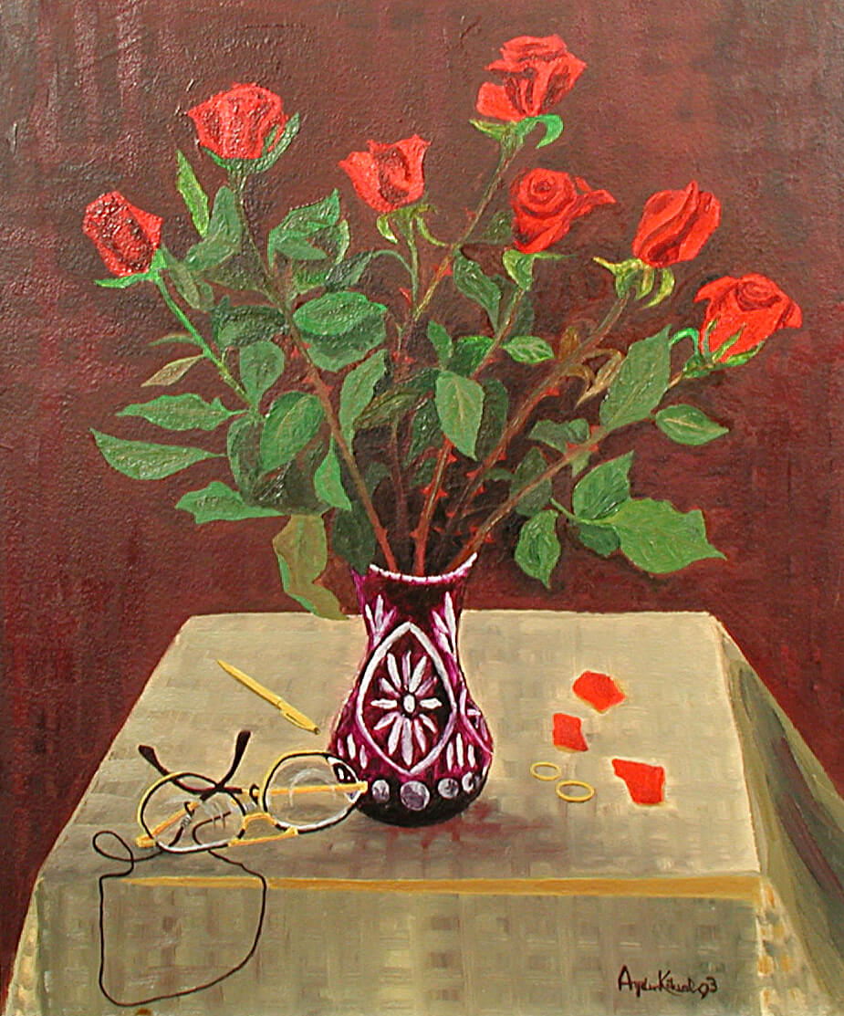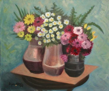 Hint Şali Üzerinde Yapay Ataturk Çiçekleri, Yağlıboya, 1994, 50x60 cm